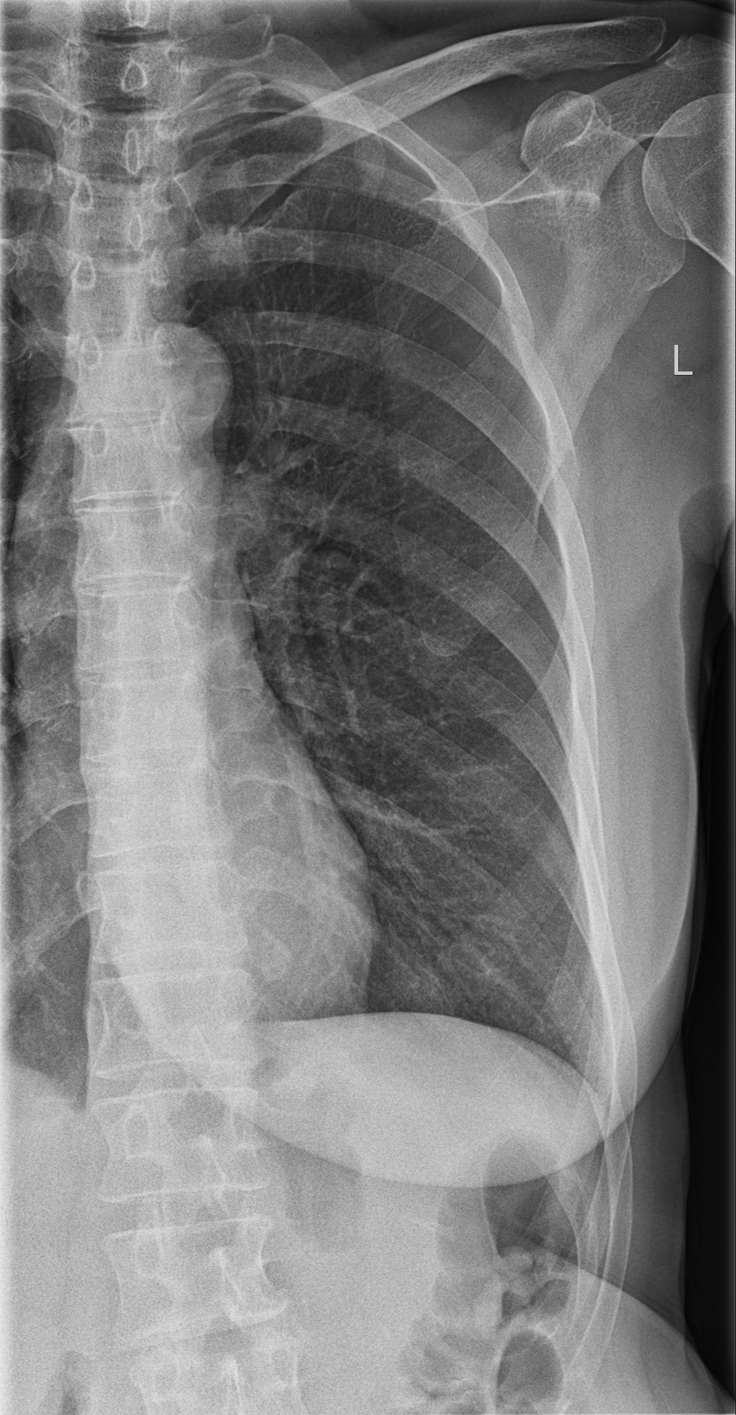 - Scharfe, bis paravertebral ins Mediastinum reichende Zwerchfellkontur