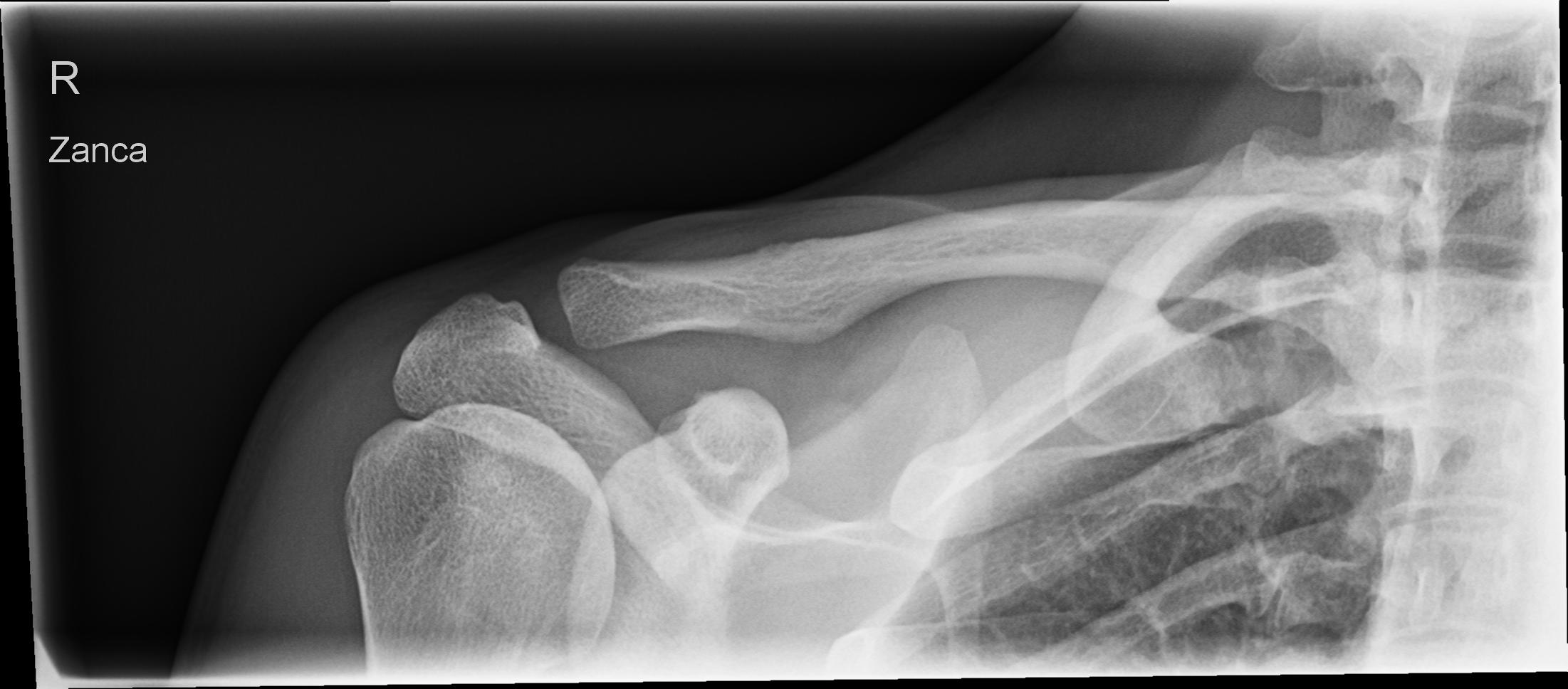 Gut beurteilbare Darstellung des ganzen Schlüsselbeins und des Acromioclaviculargelenkes.