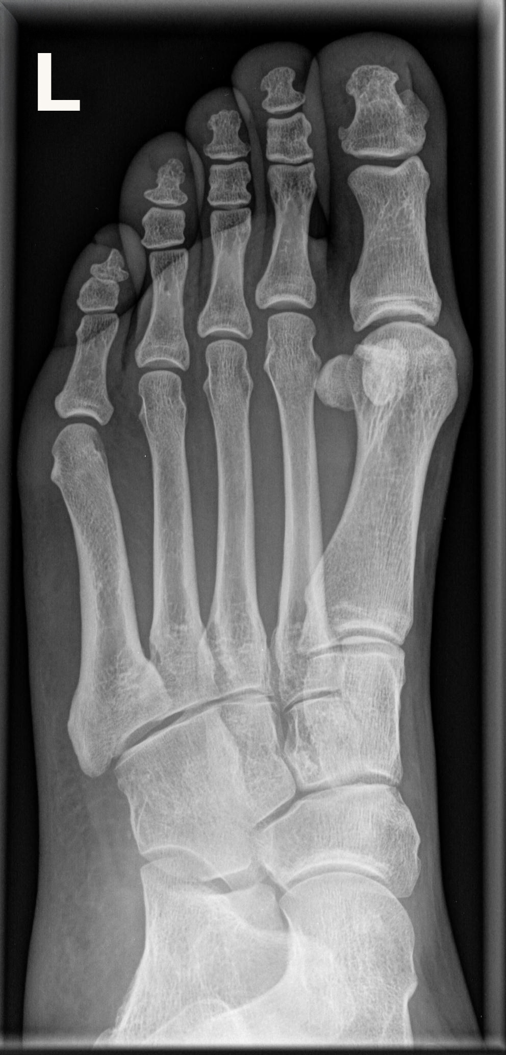 Freie Darstellung der Mittelfußknochen und Zehen sowie gute Beurteilbarkeit der Fußwurzelknochen, insbesondere des Lisfranc- und Chopartgelenks.