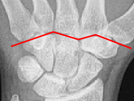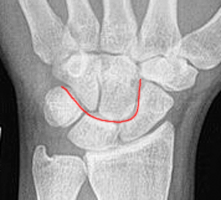 Mittlerer Bogen: distale Gelenkflächenkonturen von Sacphoid, Lunatum und Triquetum